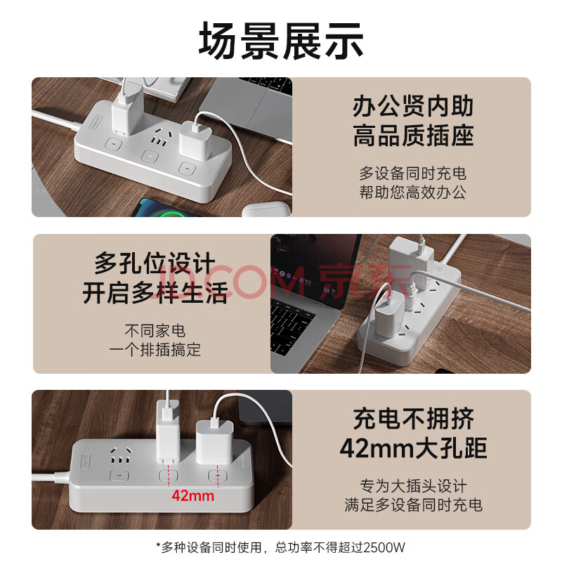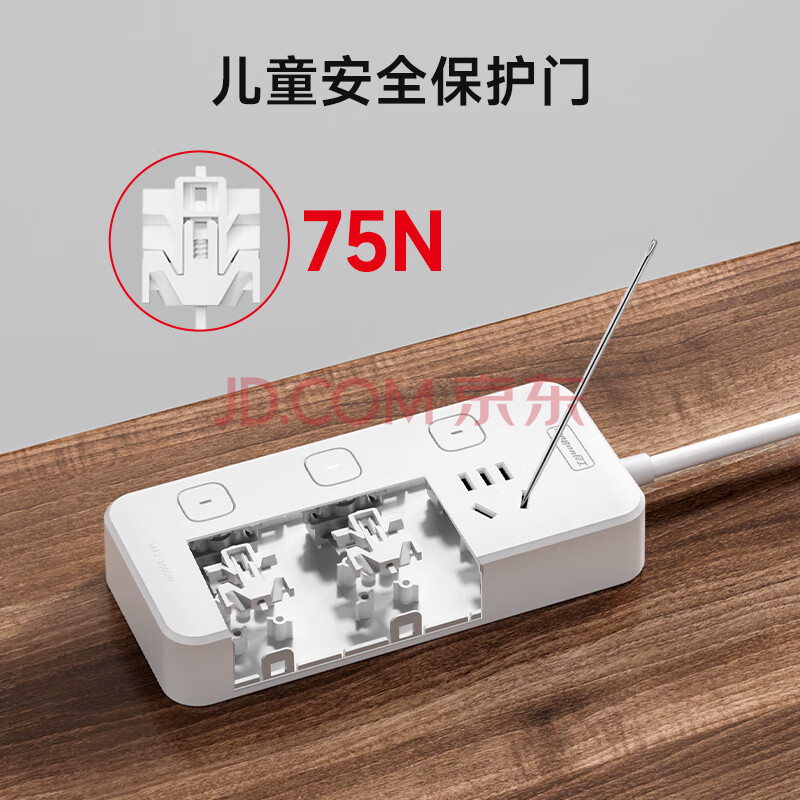 商品相册:良工(lengon)安全插座 分控3位1.8米 插排/排插/插线板/接线板/拖线板/宿舍家用办公插板 E03-1.8第