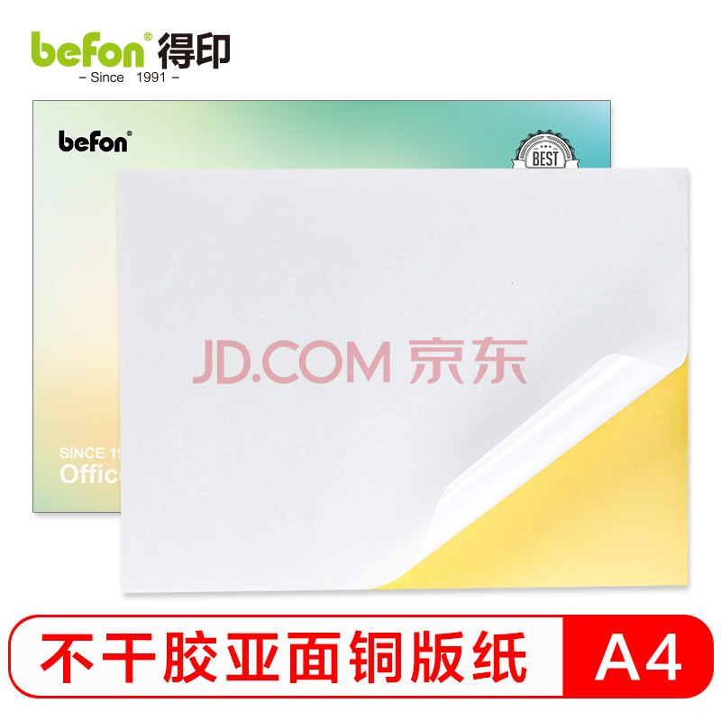 商品相册:得印(befon)A4不干胶亚面铜版纸 背胶贴纸 电脑打印标签纸 亚面210*297mm 100张/包第