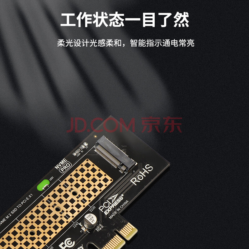 商品相册:佳翼(JEYI)PCIe转M.2转接卡 NVMe扩展卡 1700MB/s X1/X4/X8/X16兼容PCIe 4.0/3.0/2.0 SSD固态硬盘扩展卡第