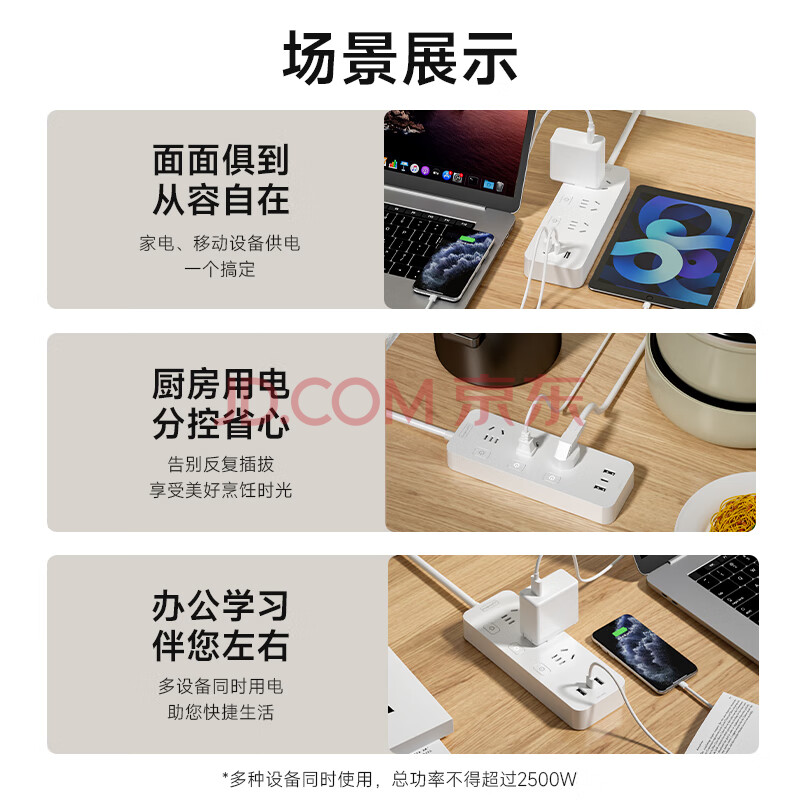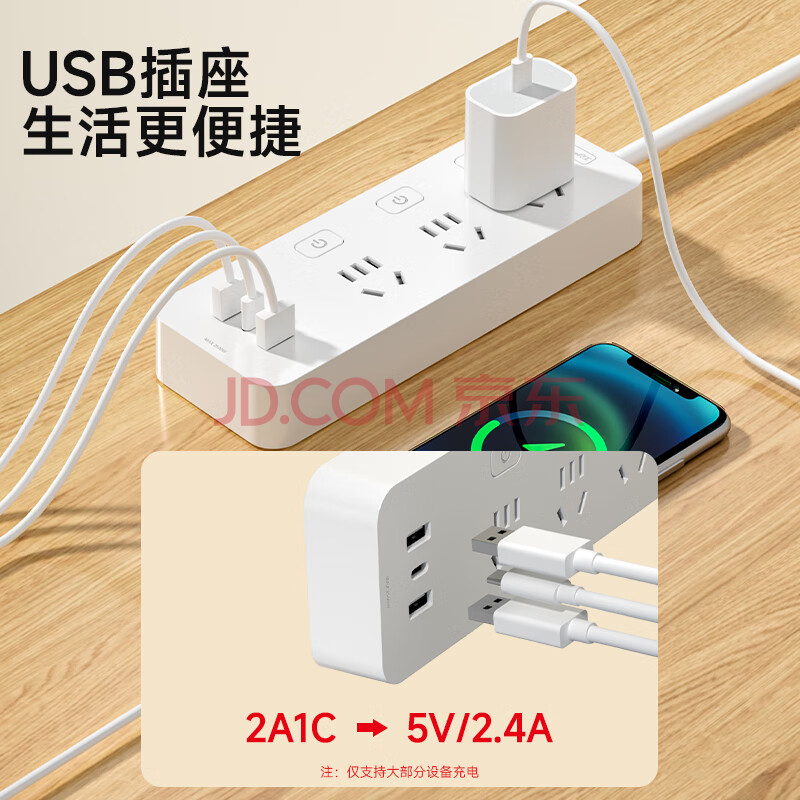 商品相册:良工(lengon)安全智能USB插座 分控3位1.8米 插排/插板/插线板/排插/拖线板/2A1C多功能接线板 E04U-1.8第