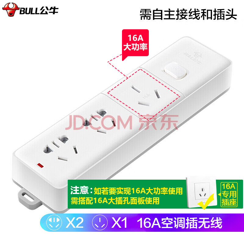 商品相册:公牛(BULL)大功率16A插座16a排插/插排插线板接线板 适用空调热水器电暖气 3位无线总控需自行接线和插头406D第