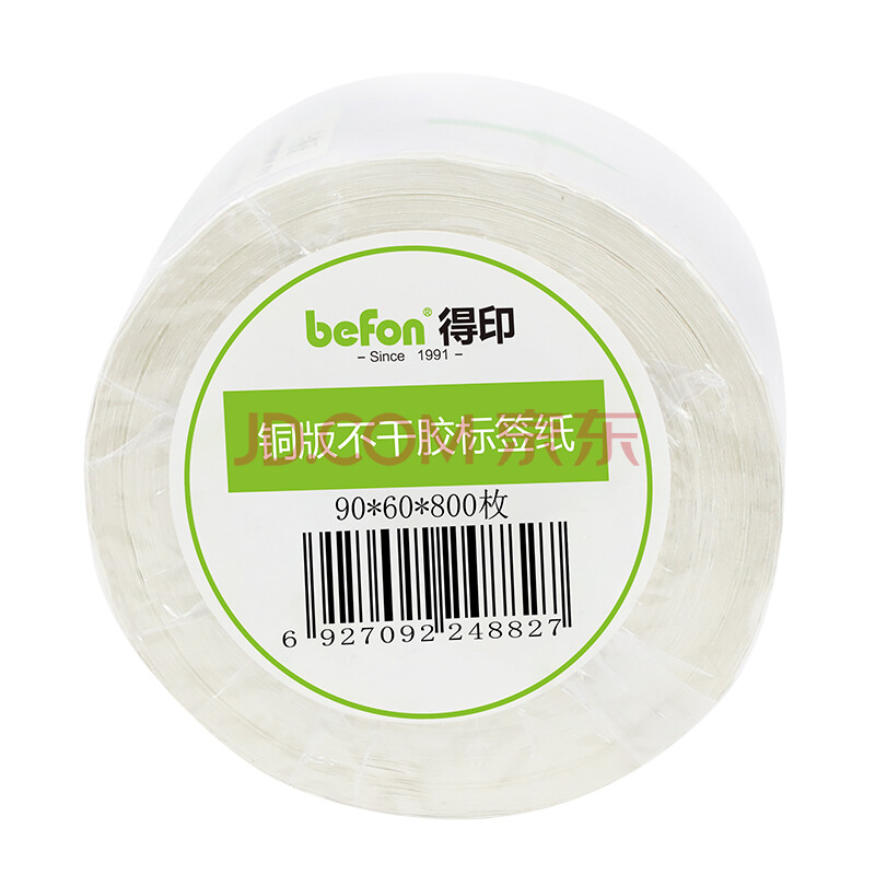 商品相册:得印(befon)不干胶标签纸 铜版纸90mm*60mm 800枚 单排 条码纸 打印贴纸第