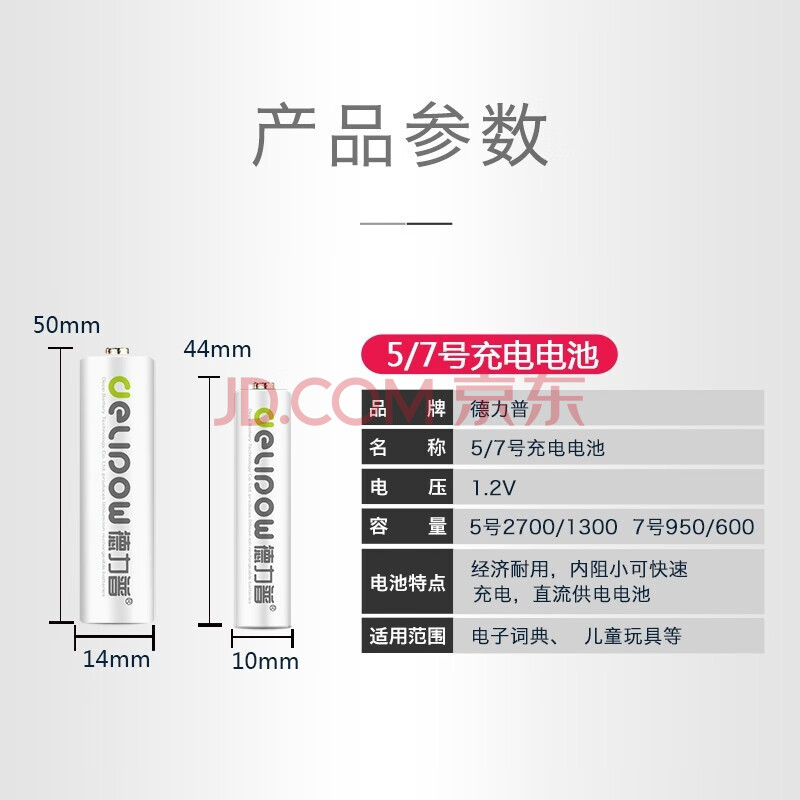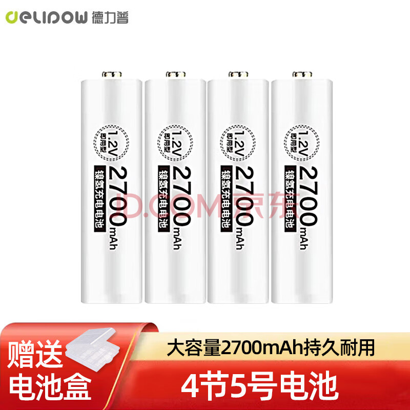 商品相册:德力普(Delipow)充电电池 5号电池大容量2700毫安4节装 适用于玩具/KTV话筒/数码相机第
