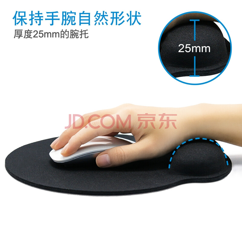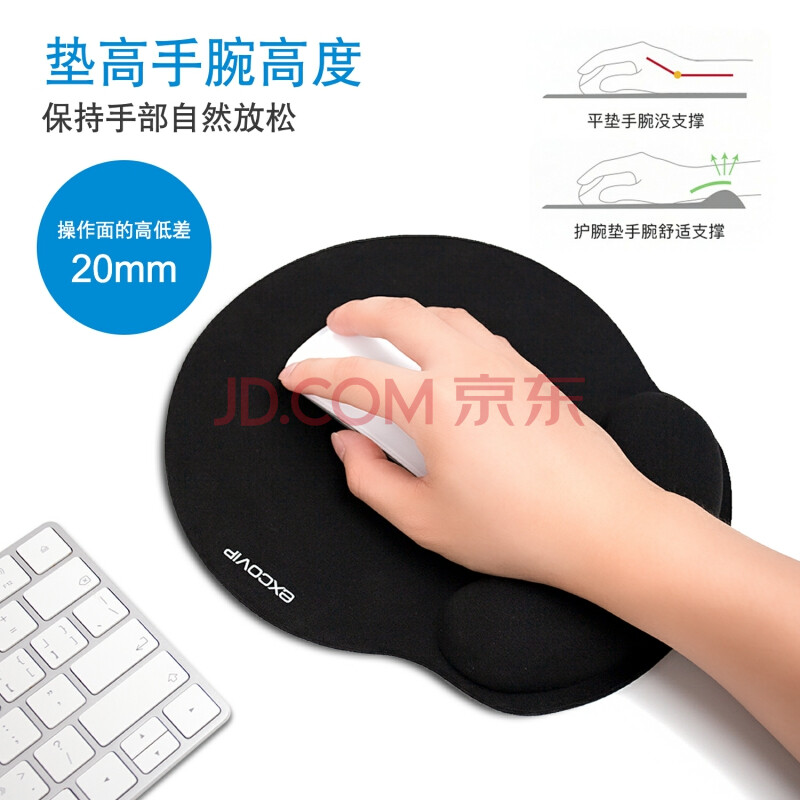 商品相册:宜适酷(EXCO)舒适记忆棉 人体工学商务办公护腕鼠标垫护腕垫子 桌面鼠标腕托 笔记本手托中号加厚掌托黑3624第