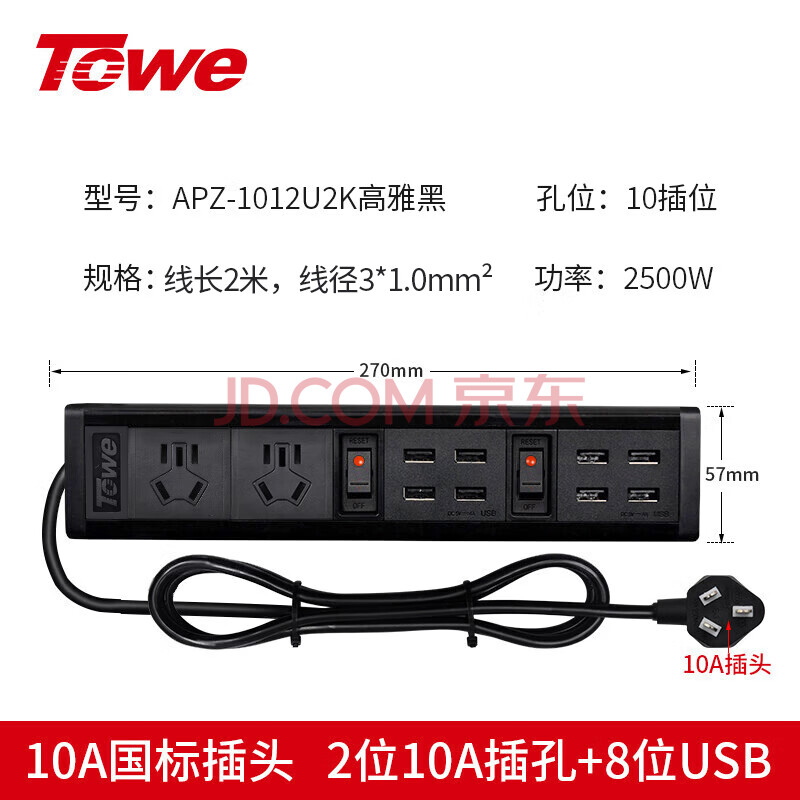 商品相册:TOWE同为大功率usb工业级多口usb插座pdu插线板 分控插排插2位总控+8位USB第