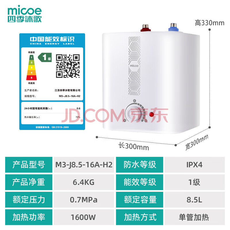 商品相册:四季沐歌(MICOE)小厨宝电热水器 速热1600W家用厨房上出水方形储水过水热8.5升一级能效第