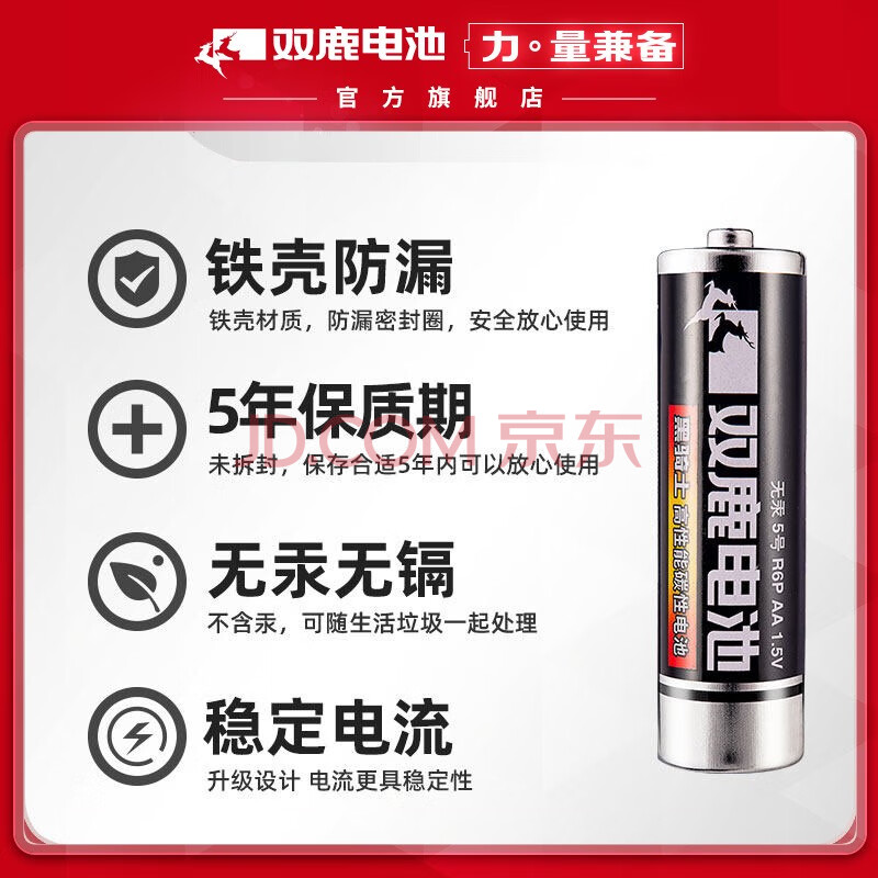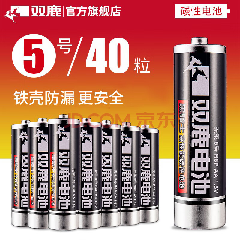 商品相册:双鹿 黑骑士5号碳性电池40粒盒装 适用于儿童玩具/遥控器/鼠标/话筒/闹钟/血压仪 R6/AA电池 40粒盒装第