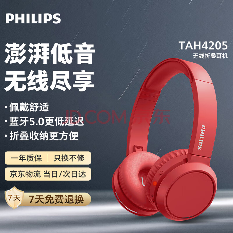商品相册:飞利浦(PHILIPS)【升级版头戴式蓝牙耳机】TAH4205 无线运动耳机网课电脑笔记本耳麦 学生 办公必备 礼物 红第