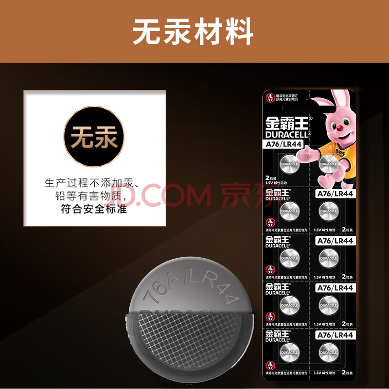 商品相册:金霸王(Duracell)LR44/A76/AG13//L1154/357A碱性纽扣电池10粒装1.5v适用手表电子计算器玩具等第