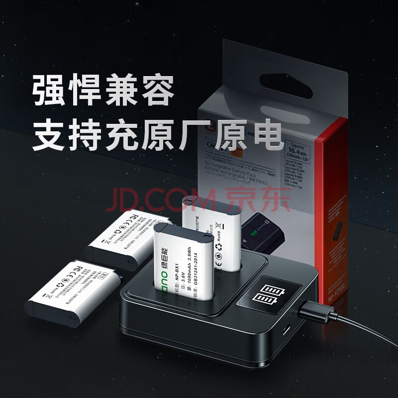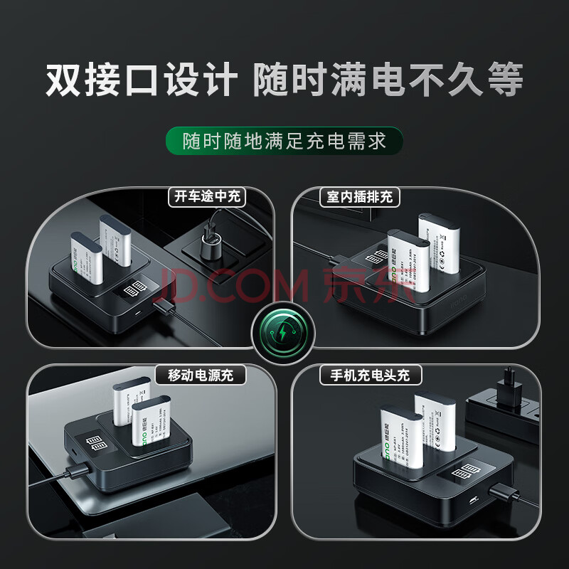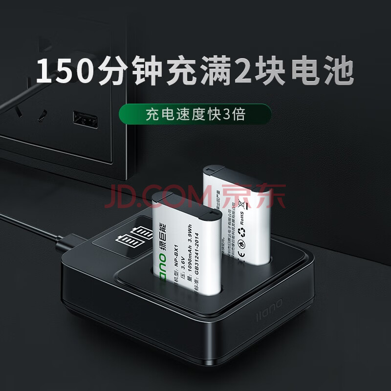 商品相册:绿巨能(llano)适用索尼zv1相机NP-BX1电池充电器RX100/HX50/WX350/RX1R/M7微单相机双充带LED显示屏充电器第