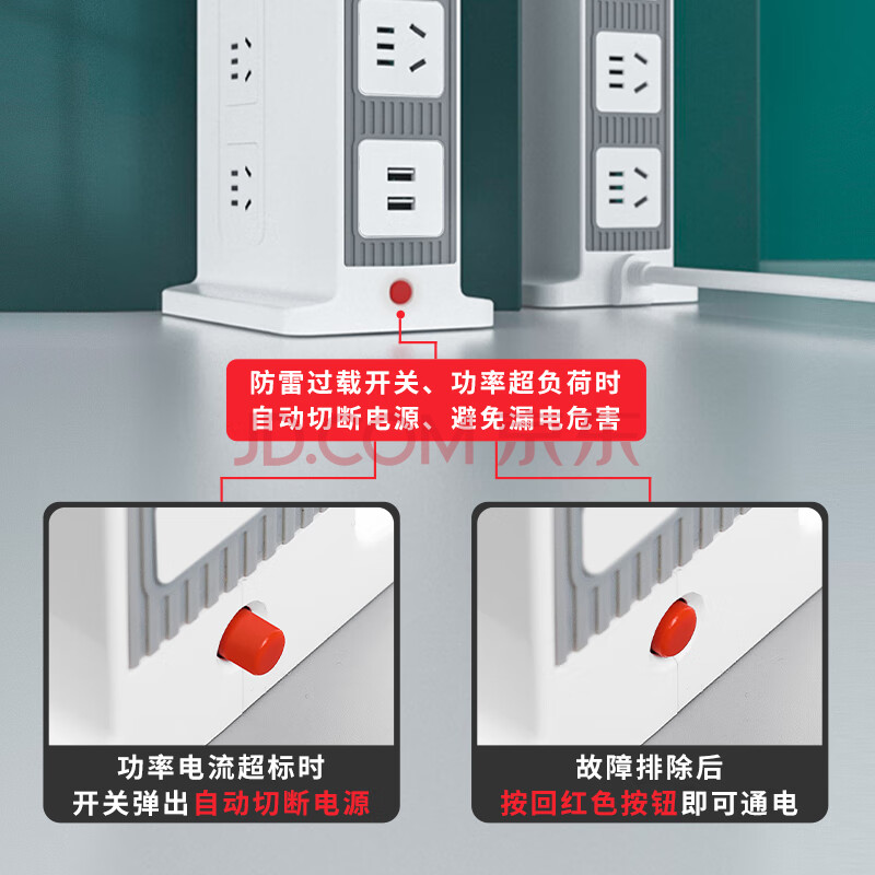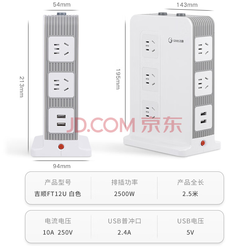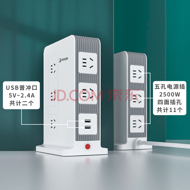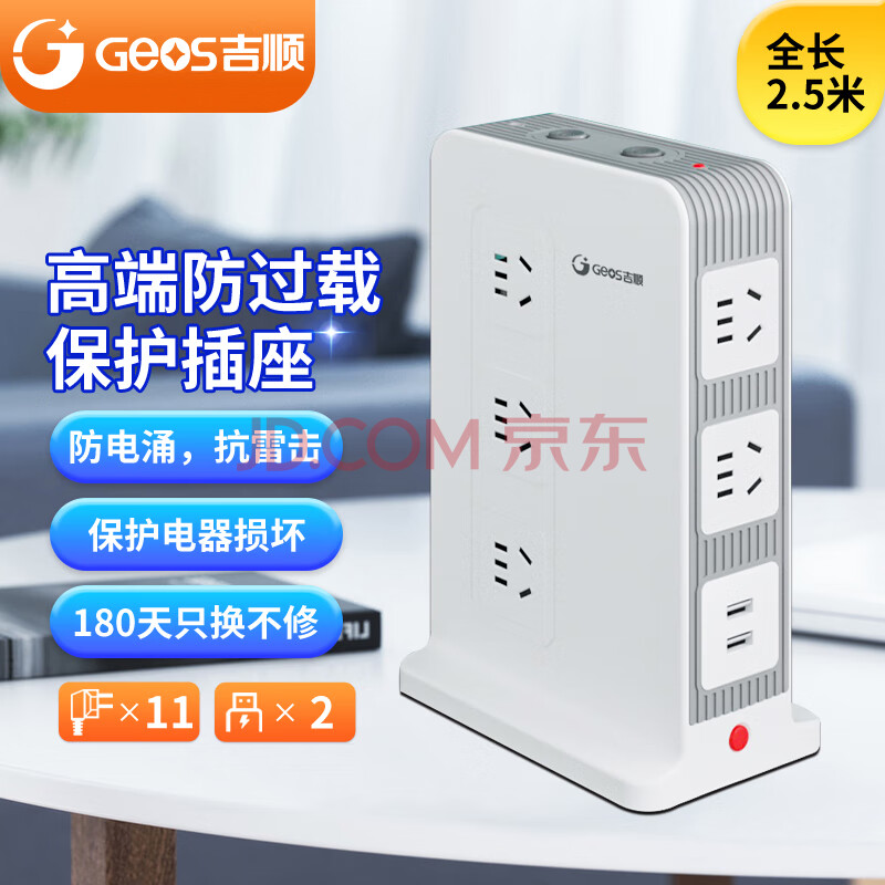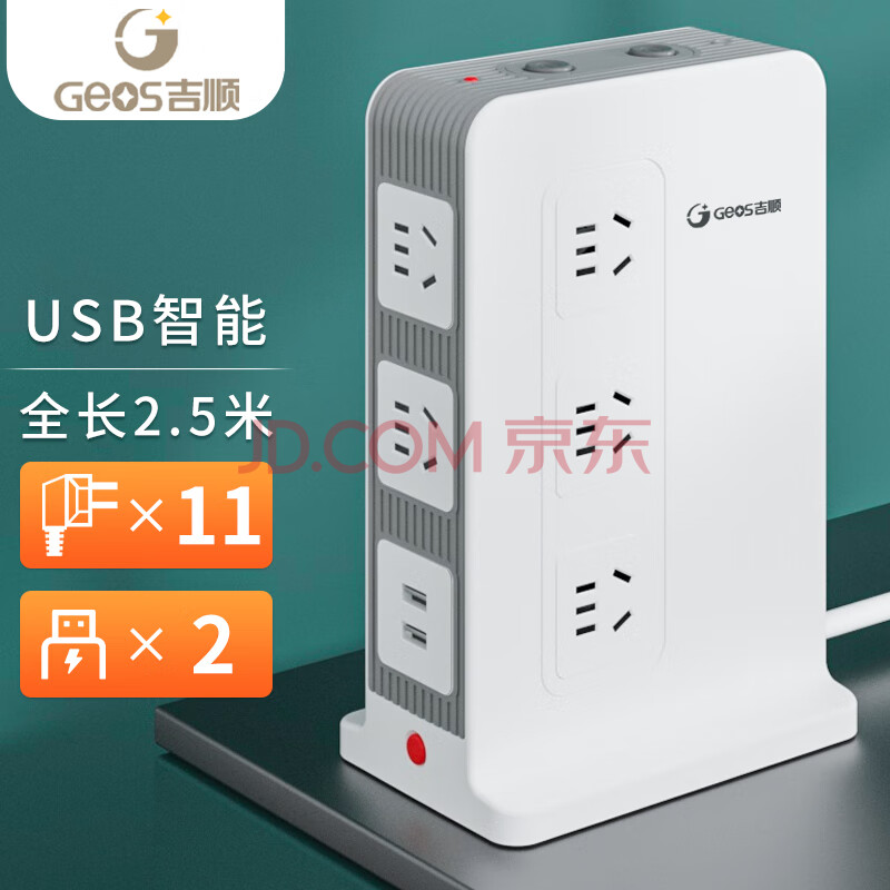商品相册:吉顺立式插座办公牛插排USB多功能桌面排插线板拖接线板新抗电涌国标分控 2.5米第
