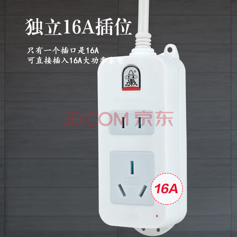 商品相册:子弹头大功率16A空调插座/插排/插线板/排插/接线板/拖线板 2位总控全长1.8米送10A头 TS-820A 第