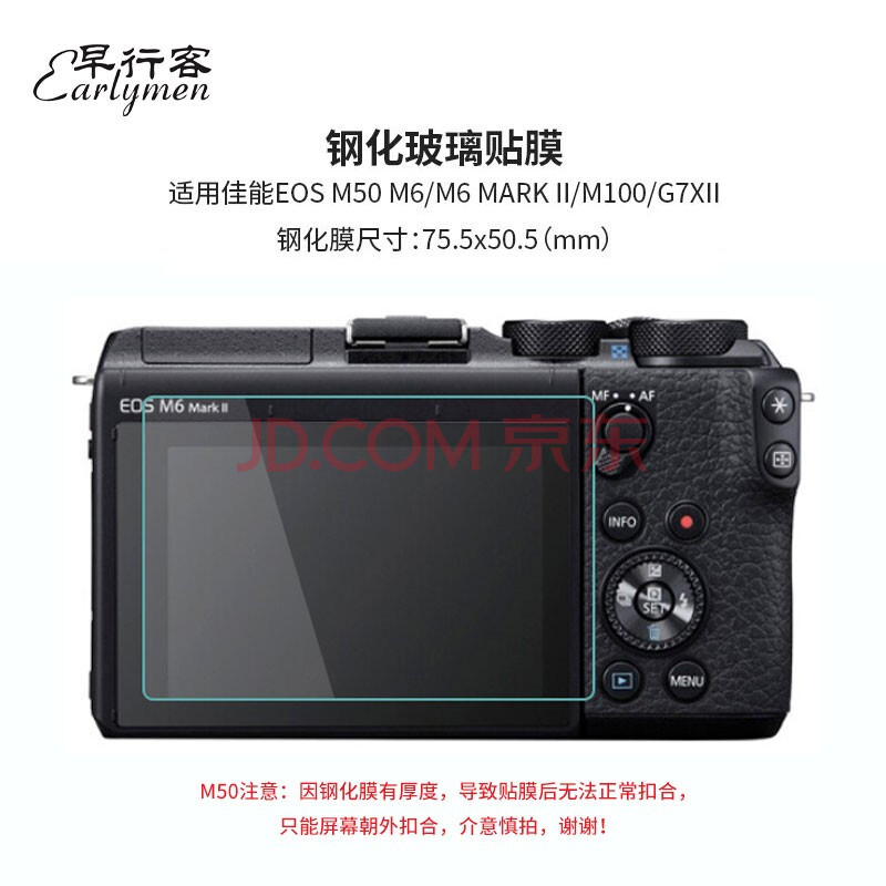 商品相册:早行客双片装 适用佳能M62钢化膜m6二代贴膜M50 M50II M100 G5X2 G7X2 G9X2相机屏幕保护膜微单配件第