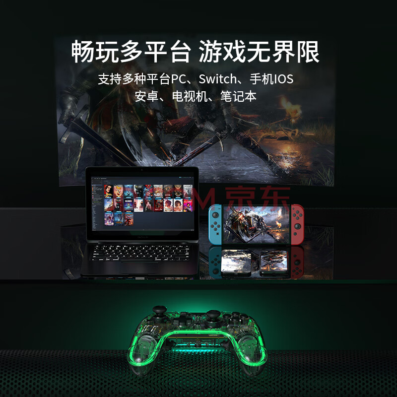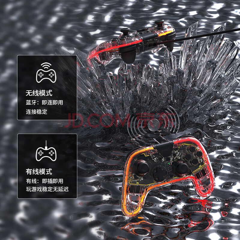 商品相册:黑爵(AJAZZ)AG190 无线游戏手柄 透明手柄 Switch手柄 有线/蓝牙双模 Steam电脑PC电视 RGB 黑水晶第