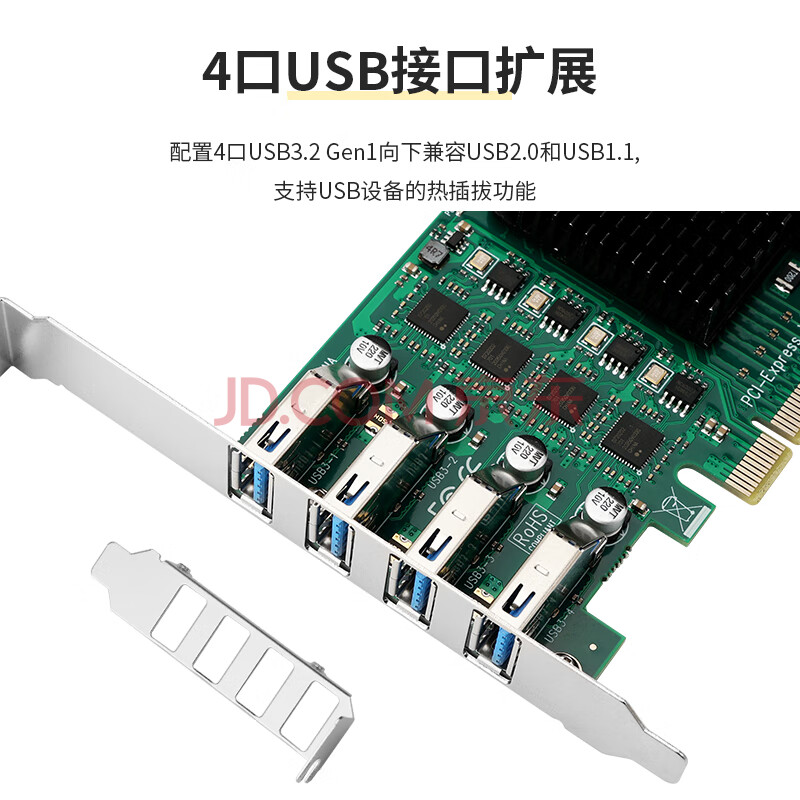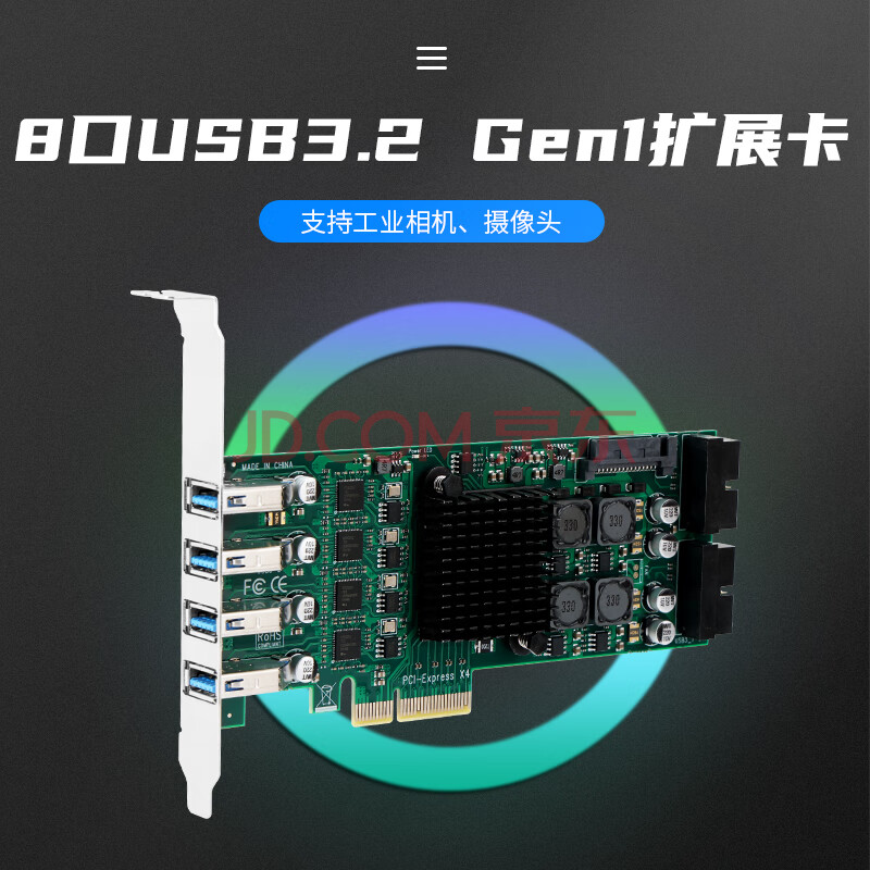 商品相册:魔羯(MOGE)八口扩展USB3.0转接卡PCIE转usb3.2 Gen1服务器工业控制 高速相机 MC2047第