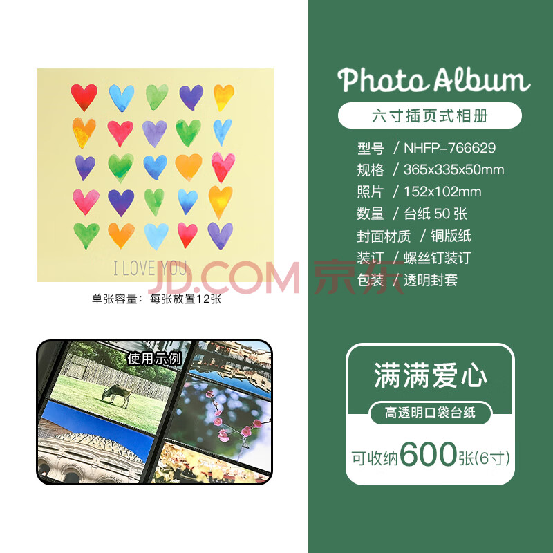 商品相册:Nakabayashi仲林NCL相册6寸600张纪念册插页式影集NHFP-766629 满满爱心600张第