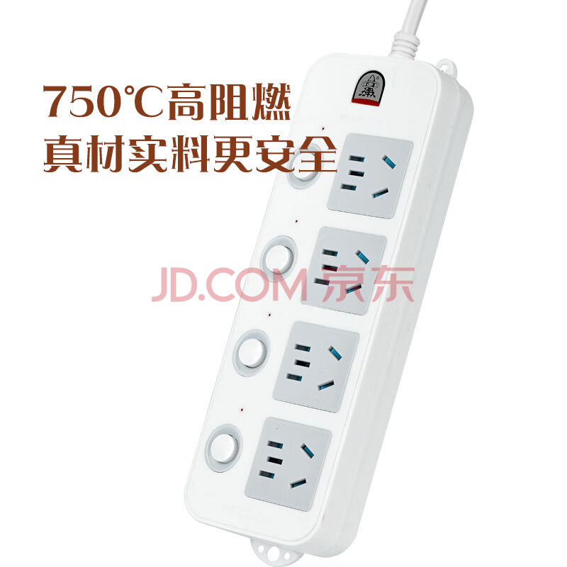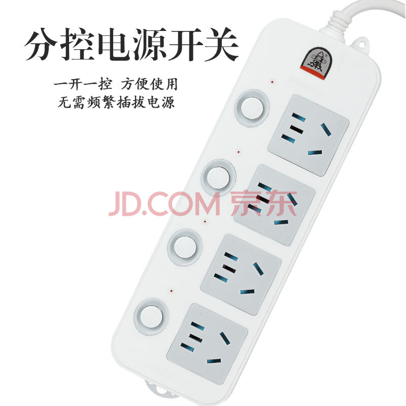 商品相册:子弹头新国标分控插座/插排/插线板/排插/插板/接线板/拖线板 4位分控独立开关全长1.8米TS-200c第
