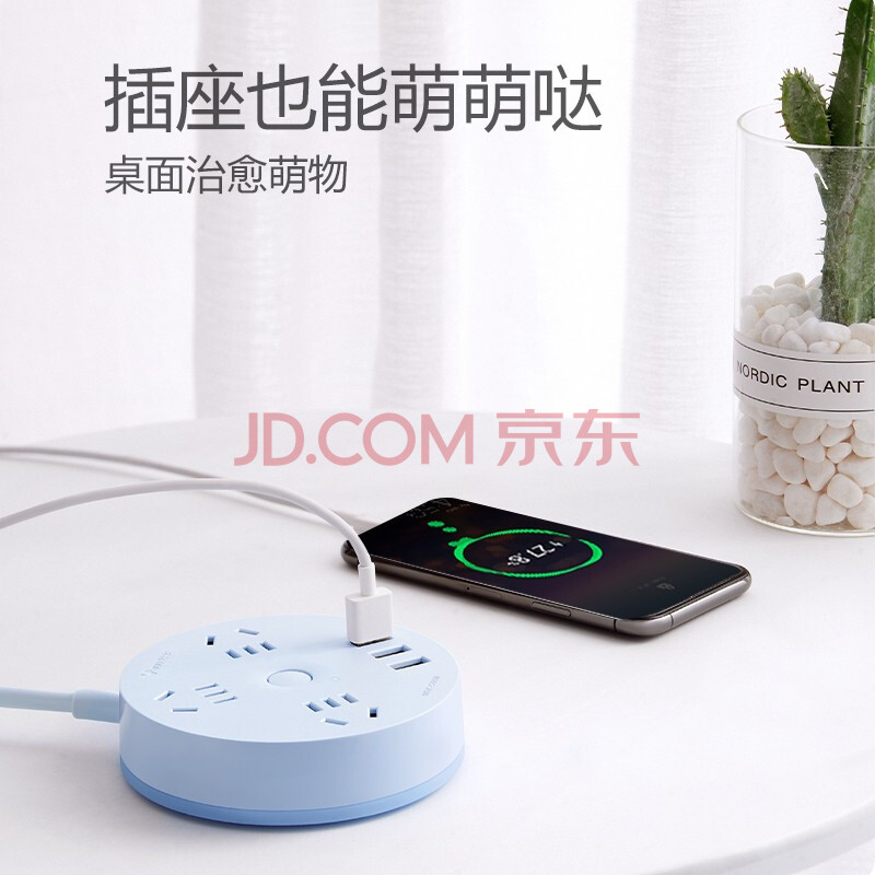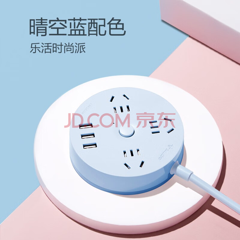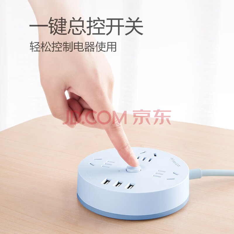 商品相册:公牛(BULL)插座/插线板/插排/排插/拖线板 圆形插座 3usb接口+3孔总控 1.8米 晴空蓝 GN-R203U第