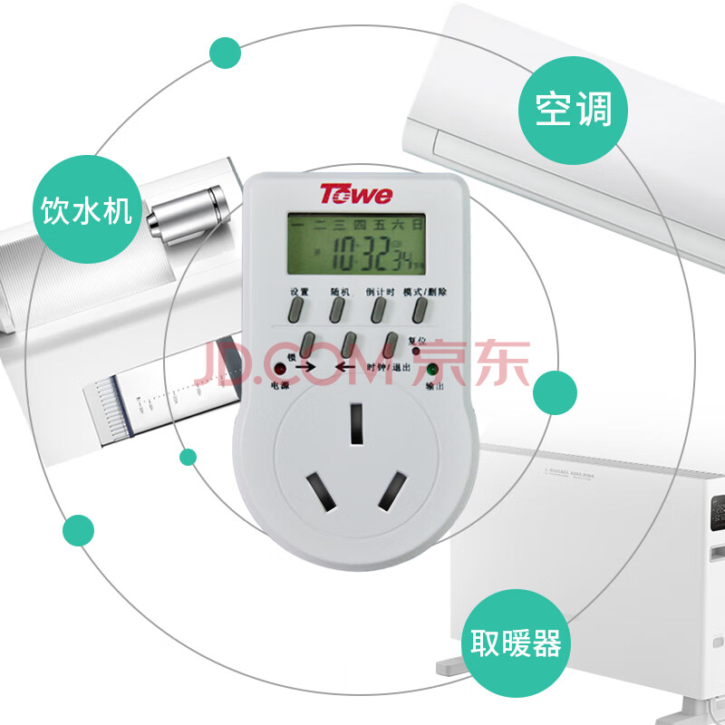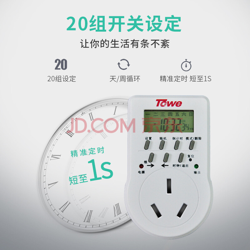 商品相册:同为(TOWE)定时插座智能电子定时器一周循环定时时间控制器大功率16智能定时器插座TW-ED16G第