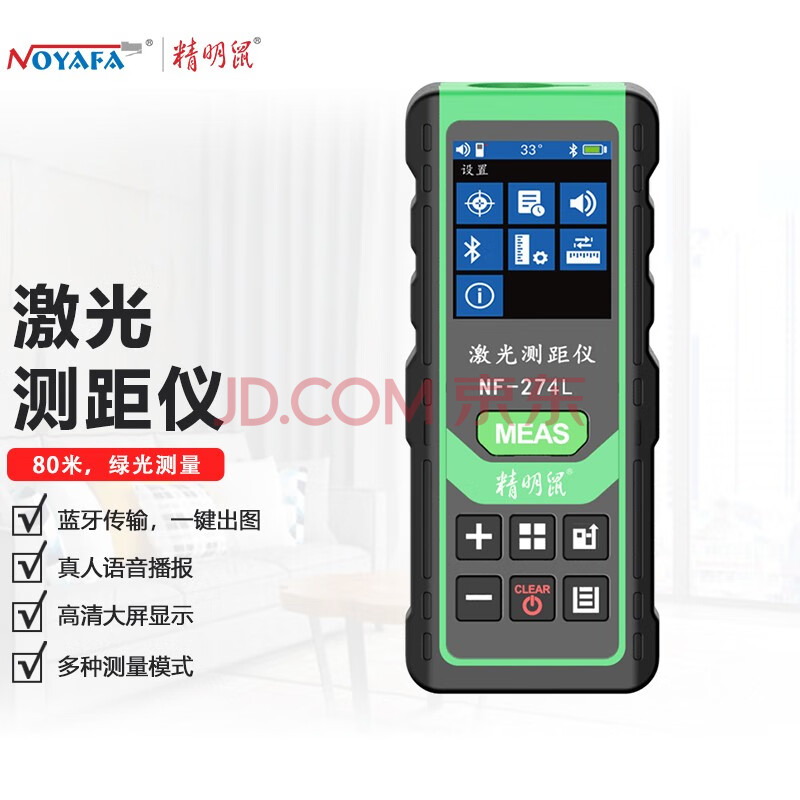 商品相册:精明鼠 NF-274L-80米 绿光高精度手持式激光测距仪 红外线距离测量仪 量房仪 电子尺 测量工具 卷尺第