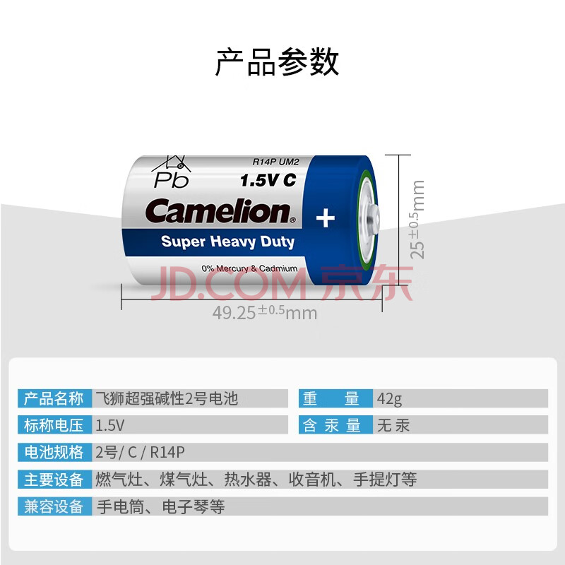 商品相册:飞狮(Camelion)碳性电池 干电池 R14P/C/中号/2号 电池 12节 燃气灶/热水器/收音机/手电筒第