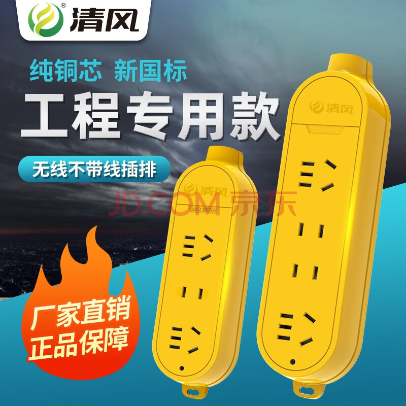 商品相册:清风(kyfen)抗摔防爆阻燃工程插座/插线板/插排/排插/接线板/拖线板 保护门 无线插座 两位两孔 两位五孔第