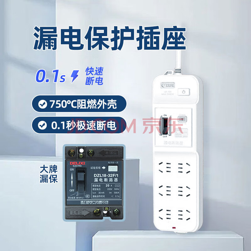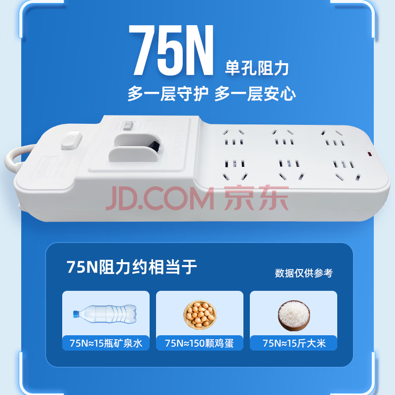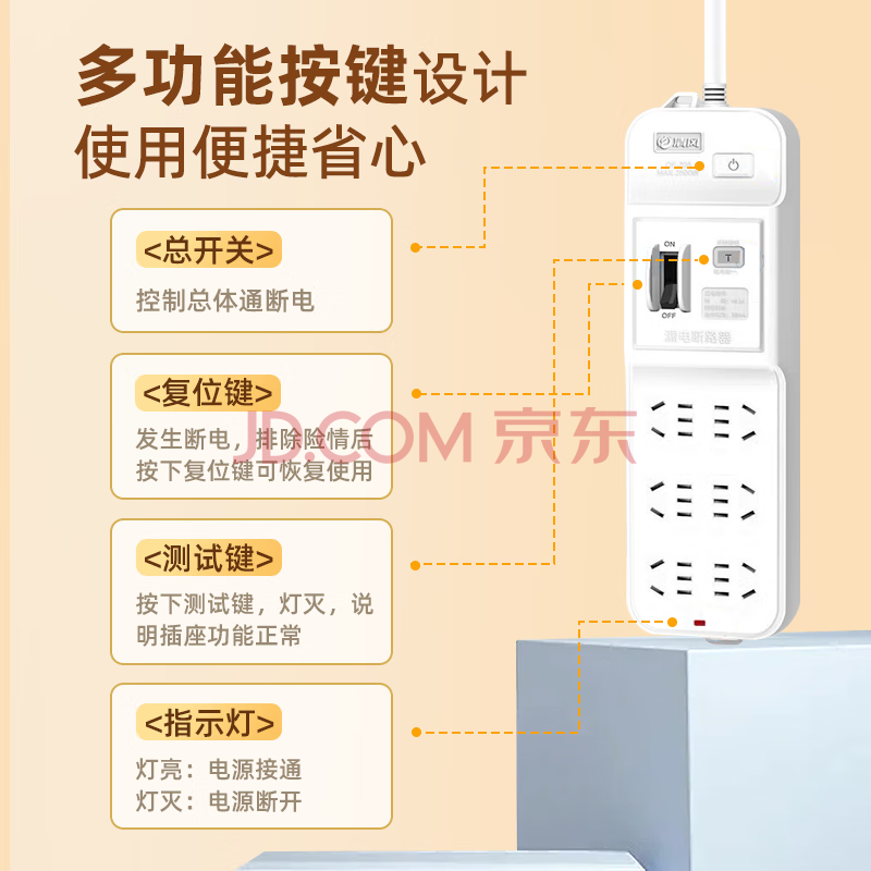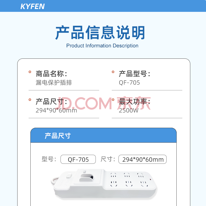 商品相册:清风(kyfen)插座/插线板/插排/排插/接线板/拖线板 保护门 总控开关 机械式漏电保护 六位两孔 全长3米第