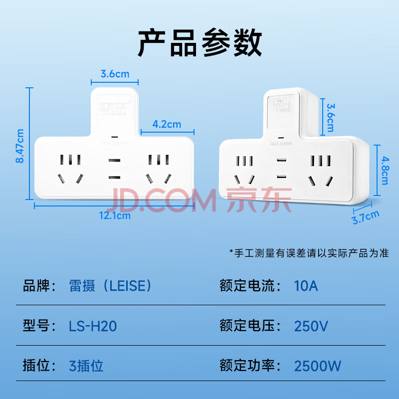 商品相册:雷摄(LEISE)一转三插座无线转换插座/转换插头/插座/插线板/插排/排插/拖线板电源转换器(白色)第