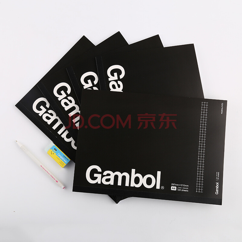 商品相册:国誉(KOKUYO)A4无线装订本Gambol渡边学生办公笔记本子胶装本 5mm方格 50张/本 5本黑色 WCN-GNB2553第