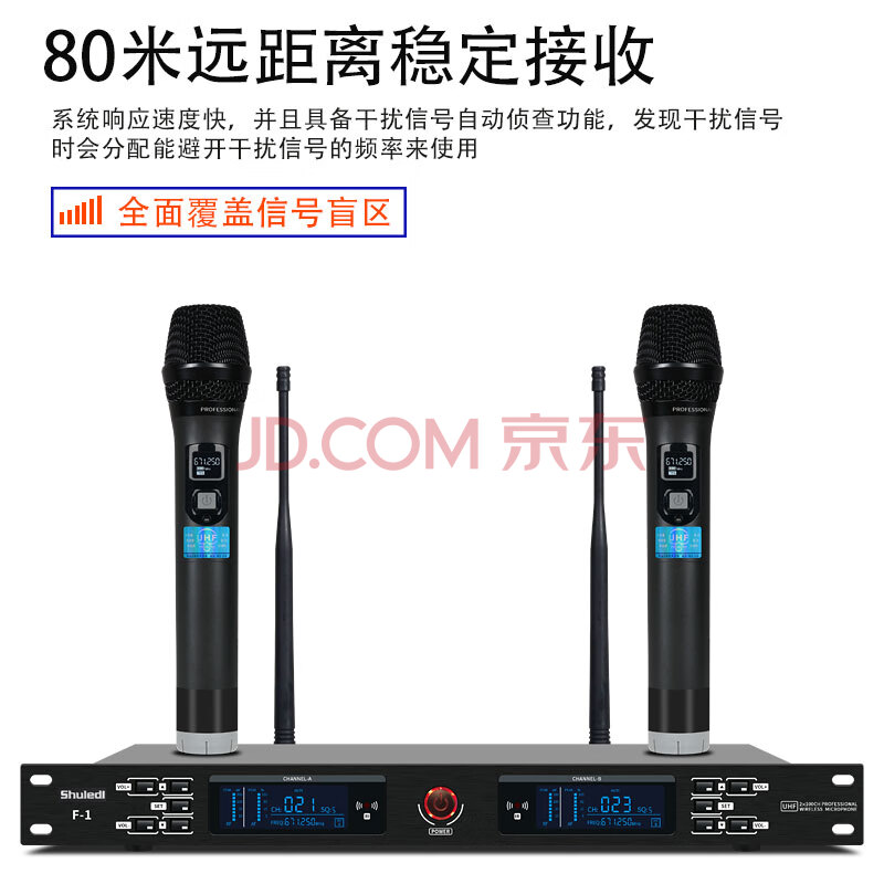 商品相册:舒乐迪(shuledi)F-1国产化无线会议室话筒 会议话筒 会议麦克风 防啸叫主持演讲手持领夹鹅颈头戴调频 2话筒+主机第