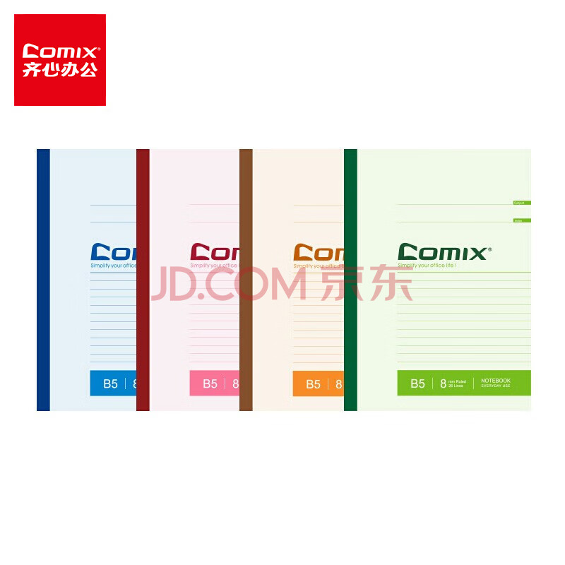商品相册:齐心(COMIX)无线装订软抄本笔记本子 办公用品工作记事本作业本学生文具混色装 12本装/B5/50张 C4509第