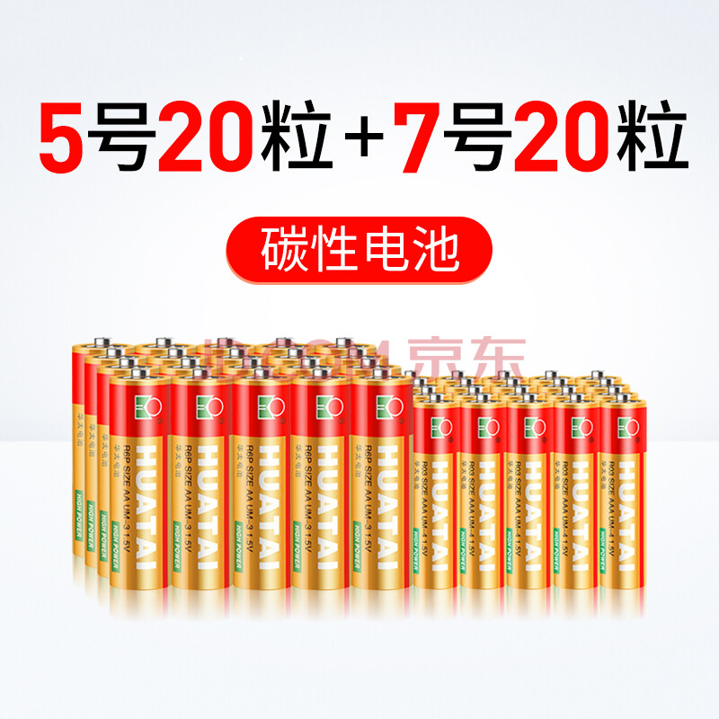 商品相册:华太 升级版红精灵 碳性电池5号20粒+7号20粒混搭 适用于:儿童玩具/遥控器/挂钟/鼠标键盘【单件包邮】第