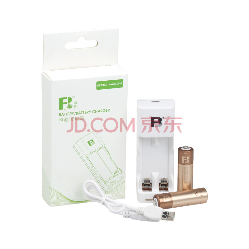 商品相册:沣标(FB) 两槽迷你充电套装 AA/5号1000mAh*2节可充电电池配USB充电器通用7号镍氢电池第
