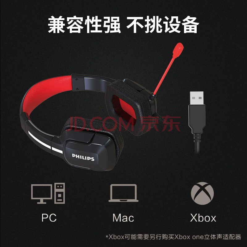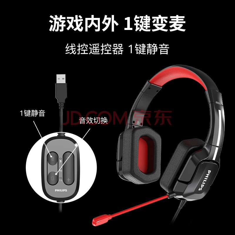 商品相册:飞利浦(PHILIPS)GH401 游戏耳机 7.1虚拟环绕呼吸灯头戴式电脑竞技吃鸡线控带麦耳机 凉感耳罩 高敏麦克风第