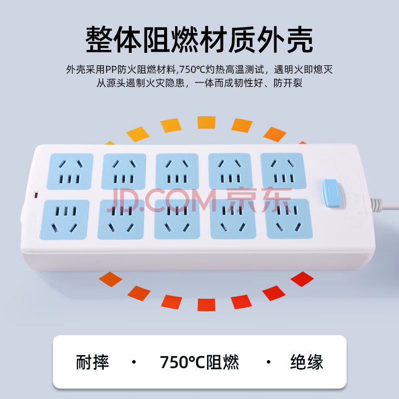 商品相册:慈慈 国标插座/插排/插线板/排插/插板/拖线板/接线板/过载保护 10位总控 全长3米 6014 第
