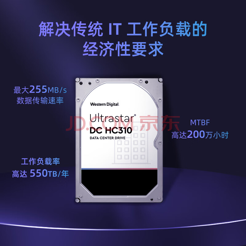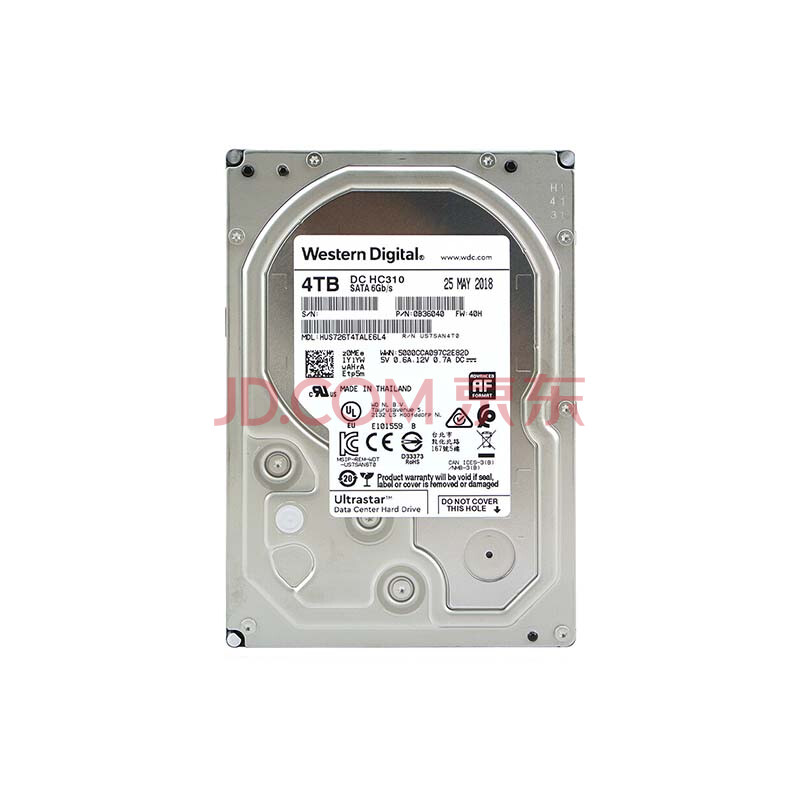 商品相册:西部数据(WD)4TB 企业级机械硬盘DC HC310 SATA 7200转256MB CMR垂直 服务器硬盘 3.5英寸HUS726T4TALE6L4第