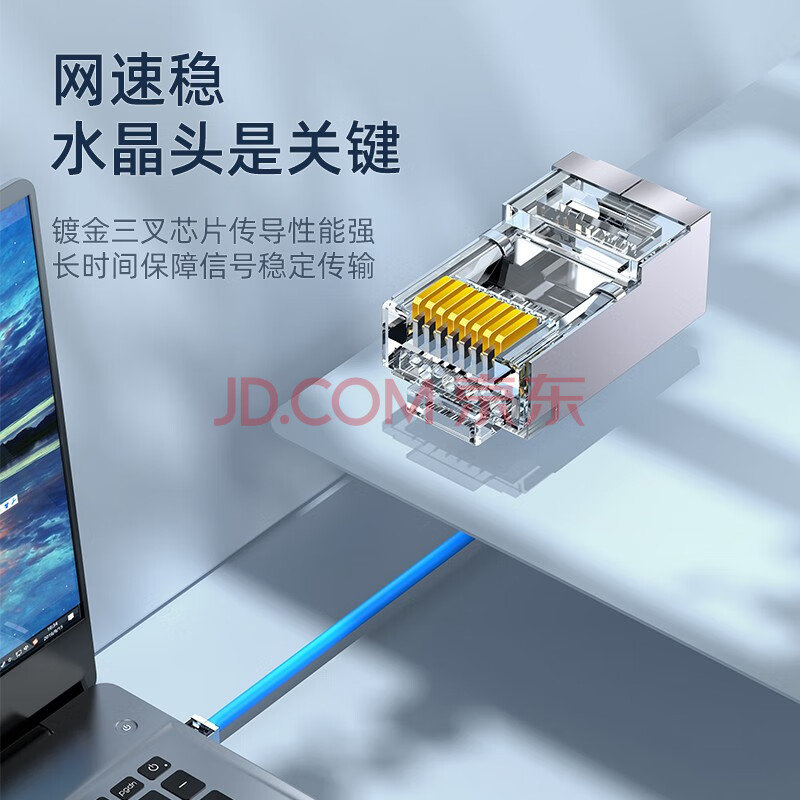 商品相册:山泽 工程级六类千兆网络屏蔽水晶头 RJ45网线8P8C网线接头 FTP铜壳水晶头 10个 PB6010第
