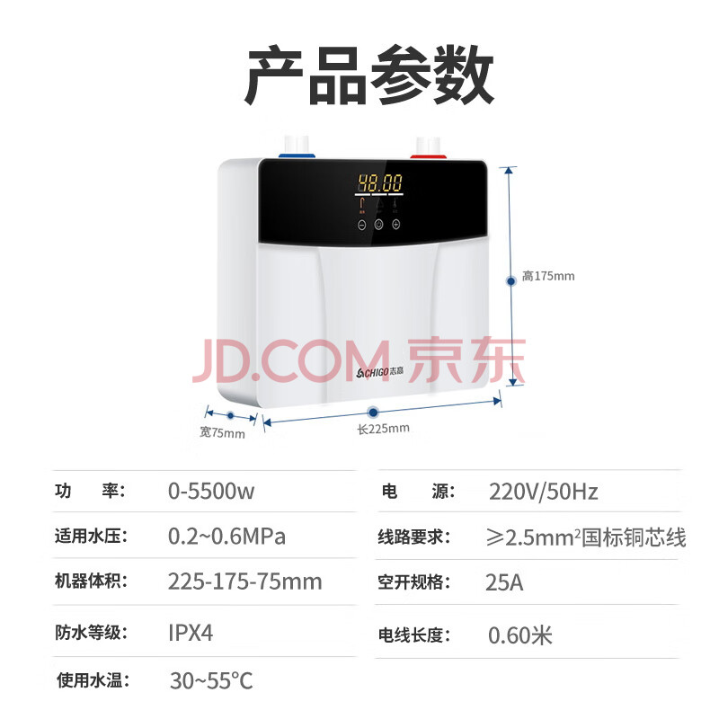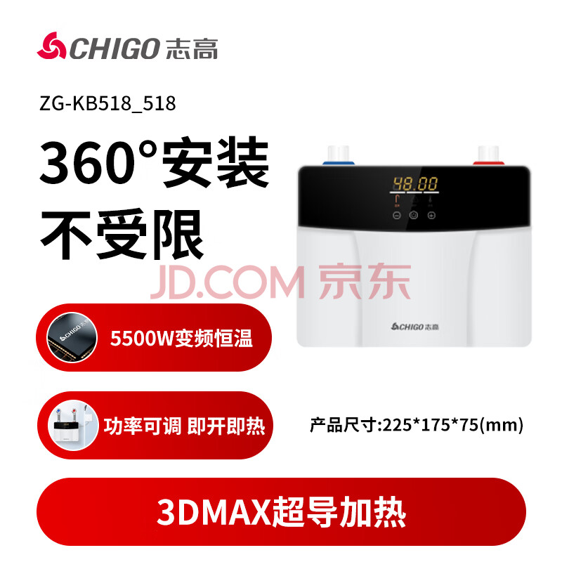 商品相册:志高(CHIGO)即热式电热水器小厨宝5500W迷你厨房家用电热水龙头加热器集成免储水不限水量热水宝ZG-KB518_518第