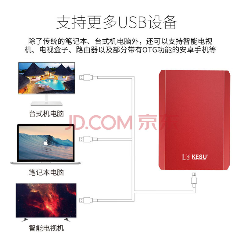 商品相册:科硕(KESU)1TB 移动硬盘加密 USB3.0 K208-热血红 2.5英寸外接存储第