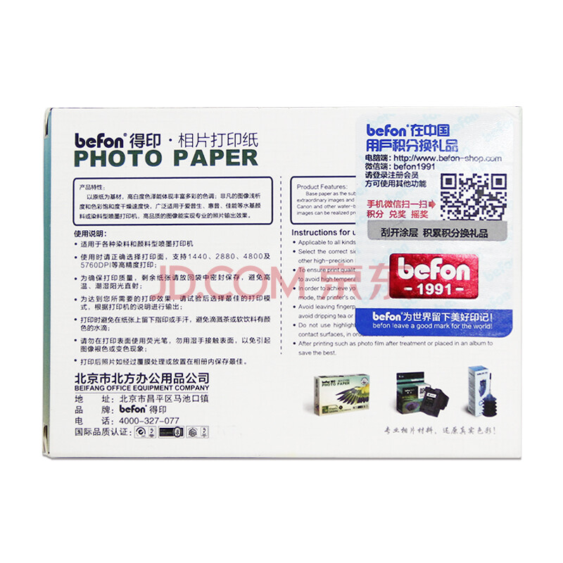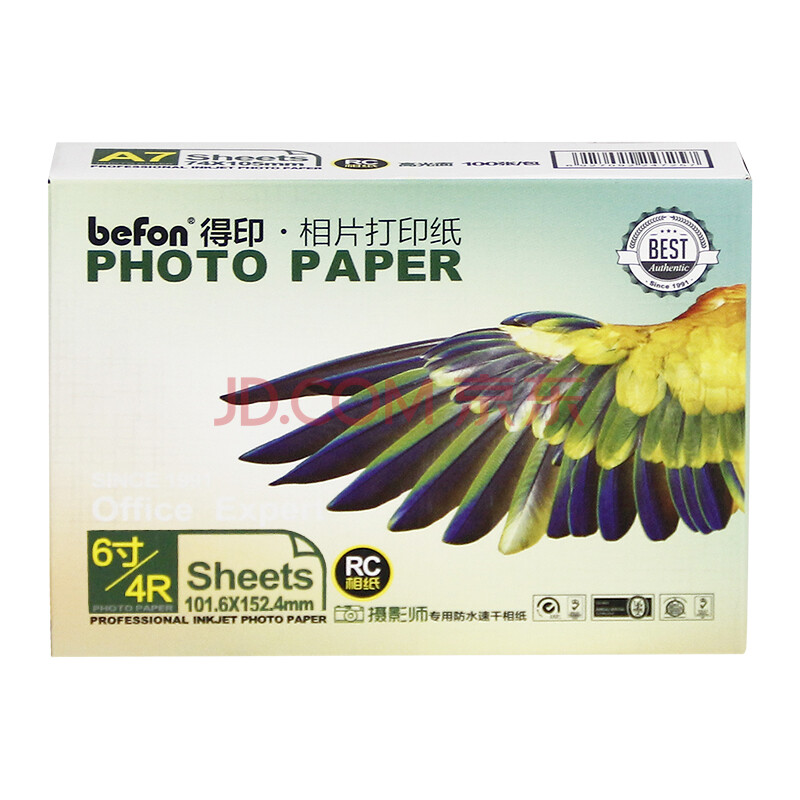 商品相册:得印(befon)4R 绒面照片纸 RC防水速干 240g 喷墨打印机照片相纸 50张/包 彩色打印相片纸第