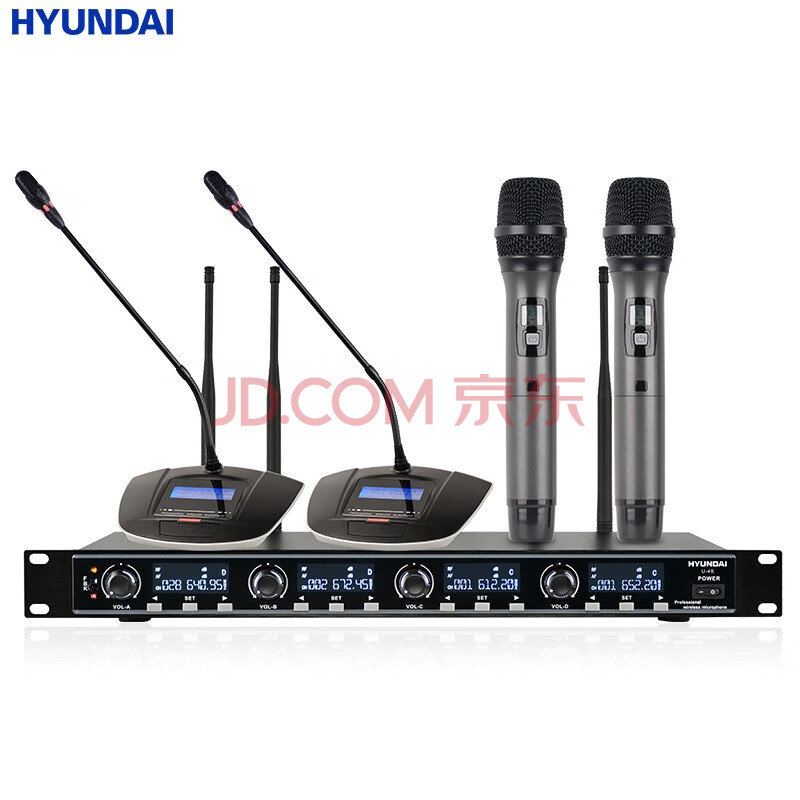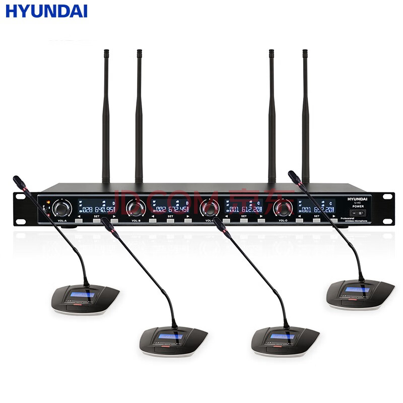 商品相册:HYUNDAI现代 U-4S U段一拖四无线话筒 会议桌面鹅颈舞台演出KTV演讲主持麦克风 四会议鹅颈第