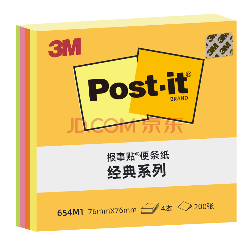 商品相册:3M 便利贴 便条纸/报事贴/便签纸/便签本 办公用品 学习用品文具 经典系列 654M1 荧光彩色多色便签第