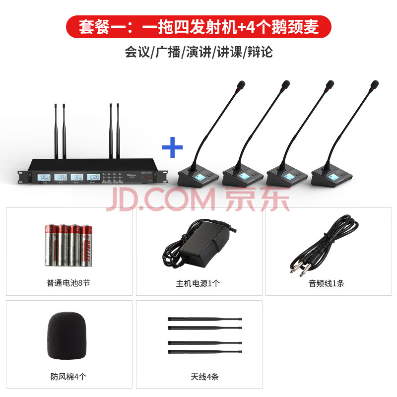 商品相册:新科(Shinco) HY-001无线会议麦克风 舞台ktv主持话筒专用领夹头戴式鹅颈演出手持麦 一拖四鹅颈会议麦第