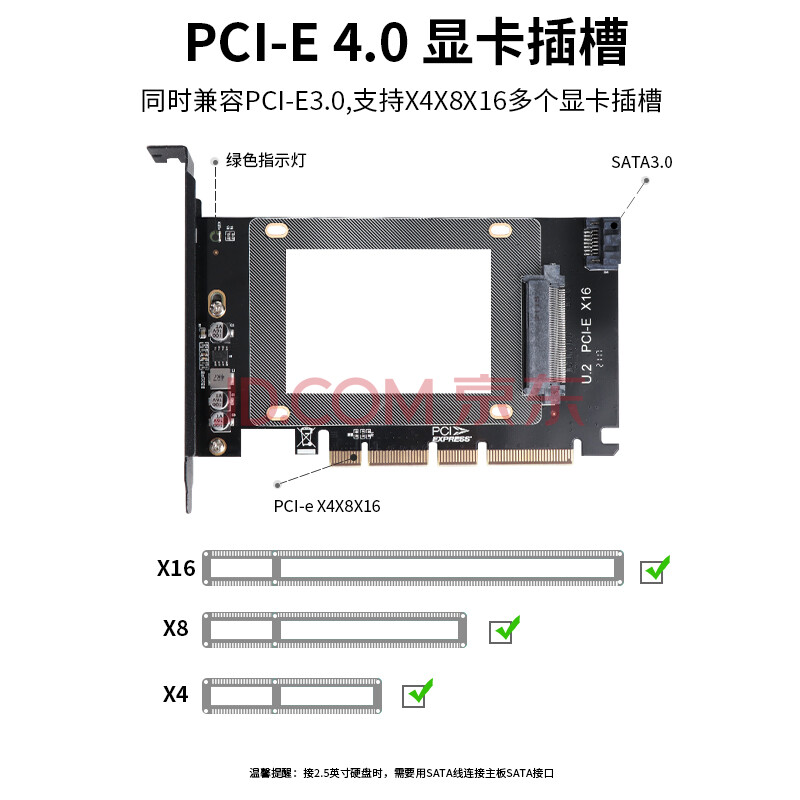 商品相册:佳翼(JEYI)PCIe转U.2 NVMe扩展卡 64Gbps高速 全高挡板 X4/X8/X16兼容PCIe 4.0/3.0/2.0 SSD固态硬盘转接卡第