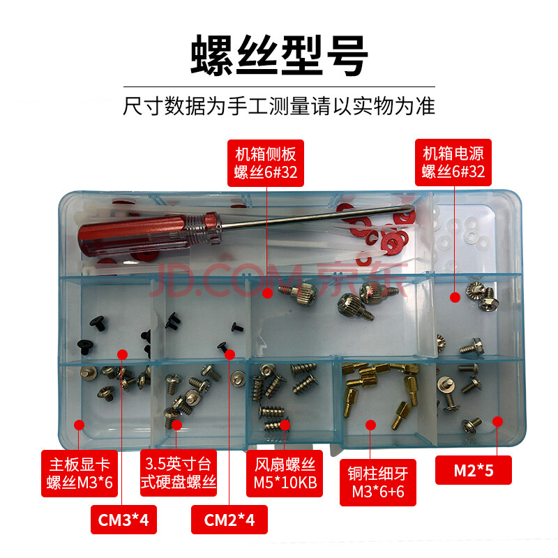 商品相册:索厉 电脑装机工具 台式机螺丝套装/含12种螺丝/带螺丝刀/带白色尼龙扎带/70005第