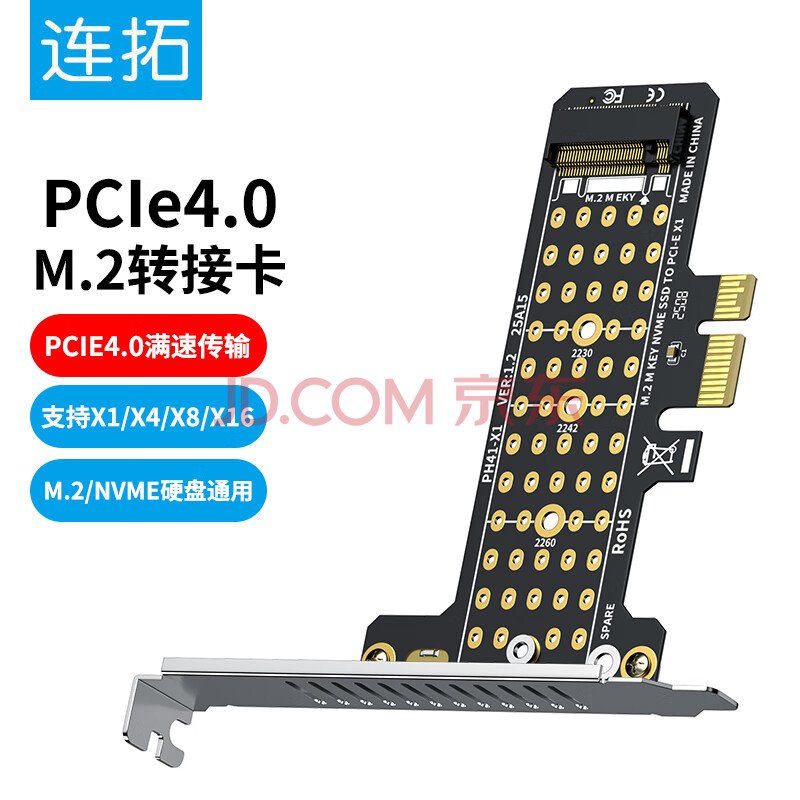 商品相册:连拓 PCIe转M.2转接卡NVMe扩展卡适用台式电脑机箱X1/X4/X8/X16兼容PCIe4.0/3.0/2.0固态硬盘SSD扩展卡第