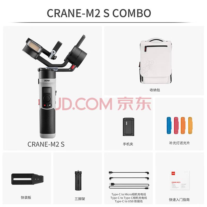 商品相册:智云全画幅微单反相机手机卡片机三轴稳定器 手持云台稳定器 VLOG摄影云鹤M2 S COMBO第