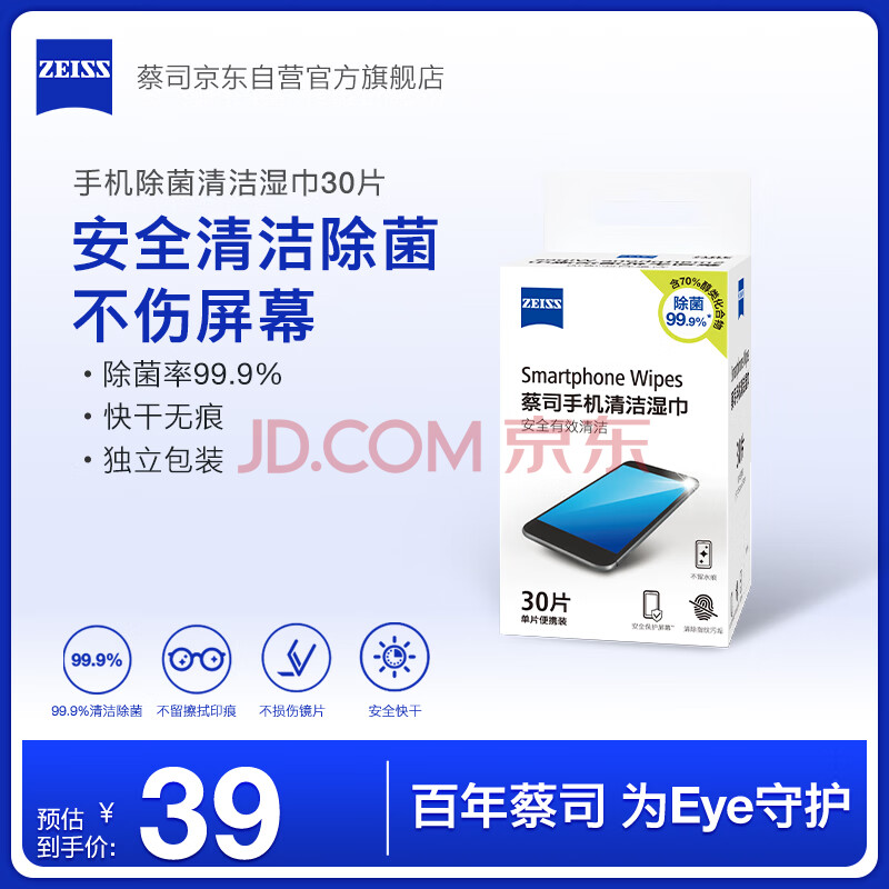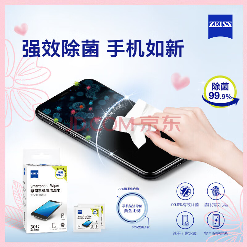 商品相册:蔡司(ZEISS) 擦手机钢琴电脑笔记本mac苹果电脑/ipad屏幕清洁湿巾 30片装第
