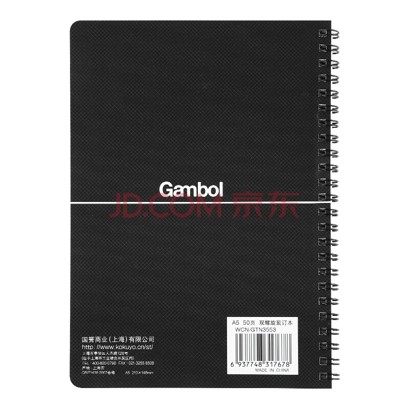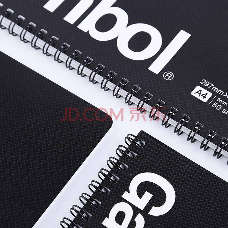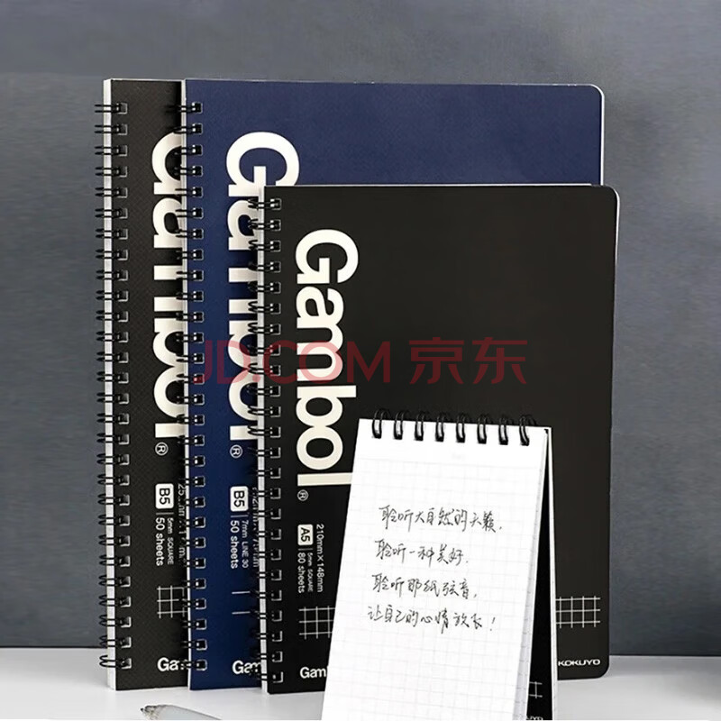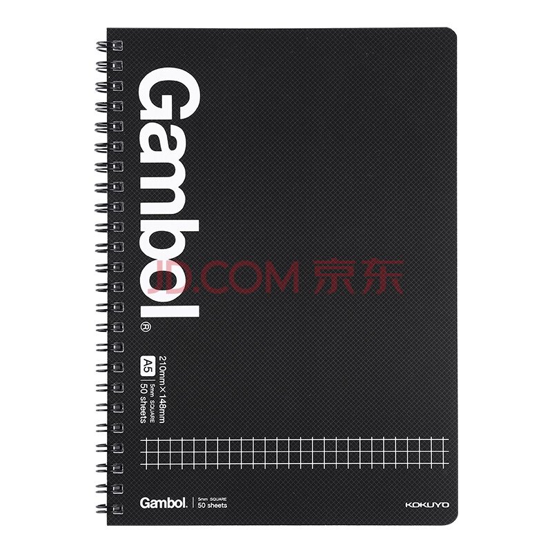 商品相册:国誉(KOKUYO)A5双螺旋装订本Gambol渡边学生办公笔记本子线圈本5mm方格 50张 4本黑色 WCN-GTN3553第