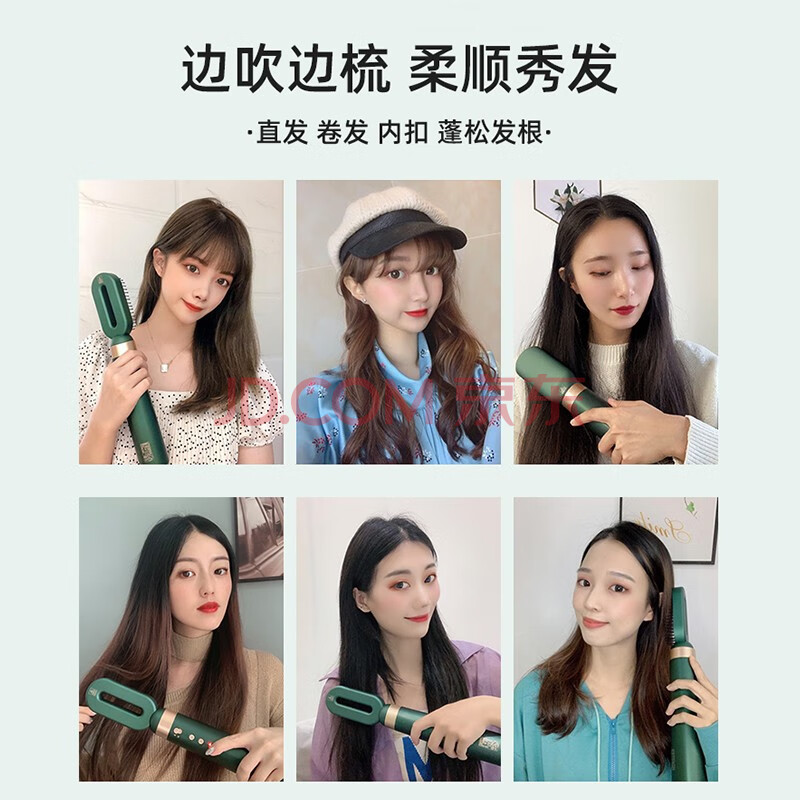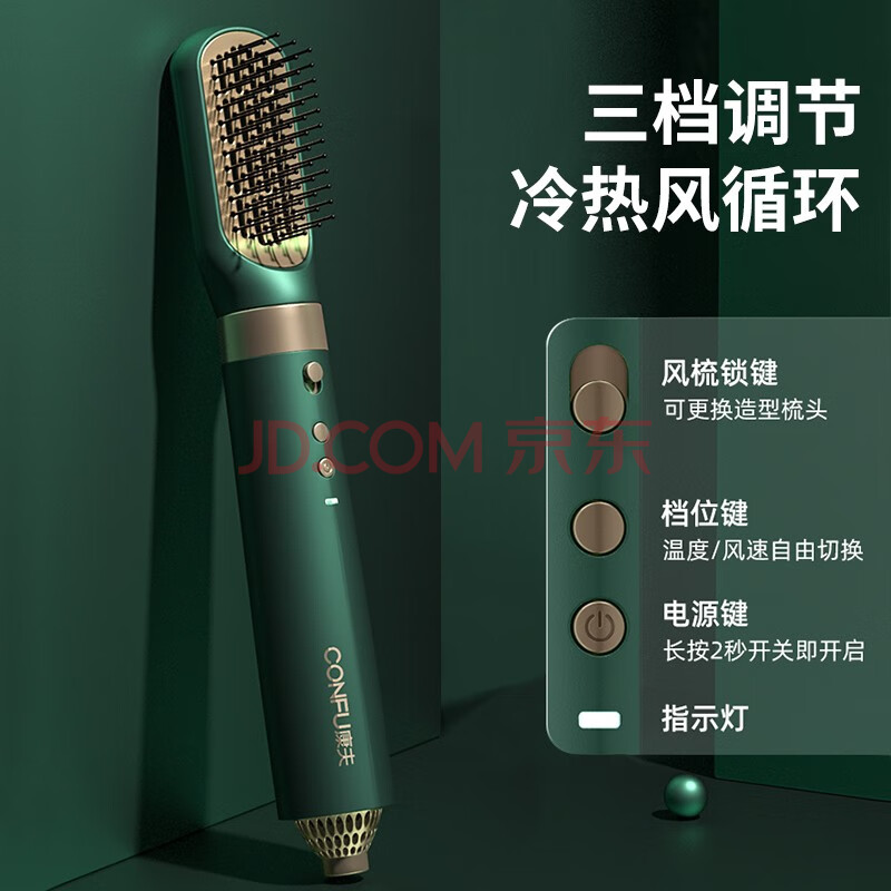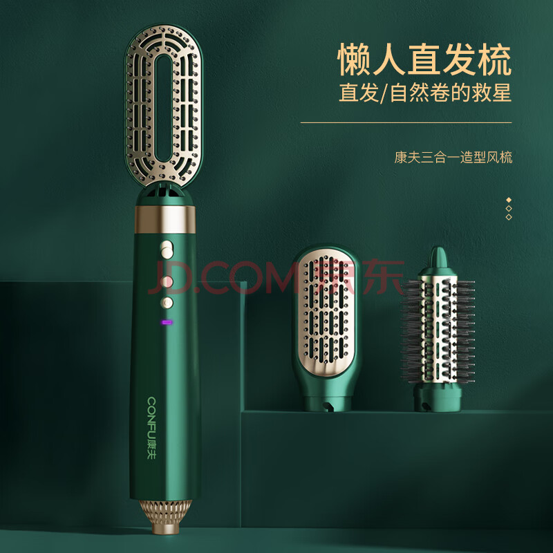 商品相册:康夫(CONFU)直发梳 多功能多合一烫发棒两用 蓬松造型 卷发梳 恒温护发直卷发器 绿色KF-3136第